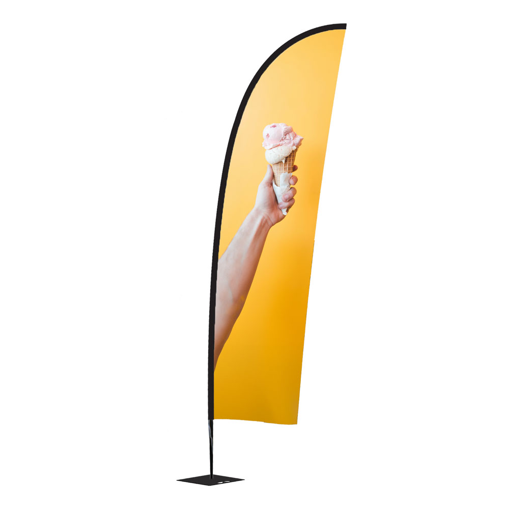 Die Beachflag Wind Extra Large von G-Medien in Lohr a. Main ist in ihrer Form besonders witterungsbeständig und daher auch für windigere Bereiche hervorragend geeignet. Somit ist sie die ideale Flagge für Außenbereiche, aber auch in Innenbereichen zieht sie die Blicke der Passanten auf sich. Deshalb kann sie optimal als Wegweiser oder zur Kommunikation von Botschaften genutzt werden, beispielsweise auf Messen und Events, bei Produktvorstellungen oder Geschäftseröffnungen. Aber auch als dauerhafter Werbeträger vor Autowerkstätten, an Ständen in der Fußgängerzone oder als Außenwerbung vor dem Einzelhandel ist sie dank ihrer Stabilität bestens geeignet.